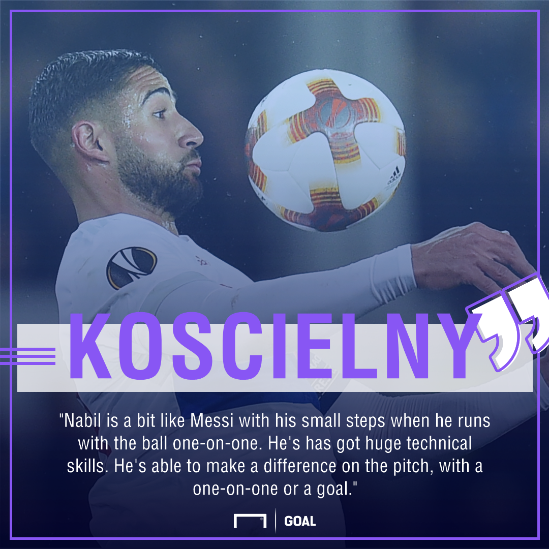 "Nabil is a bit like Messi with his small steps when he runs with the ball in one-on-one situations," Arsenal defender Laurent Koscielny said last year. "He's has got huge technical skills. He's able to make a difference on the pitch, with a good one-on-one or with an assist or a goal."